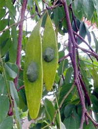 Quả đậu dẹt mỏng, khi chín mầu nâu vàng nhạt. Mép quả mỏng như cánh có 1 - 2 hạt, nơi có hạt lồi ra như vú, thường có 1 (ít khi 2) hạt.
