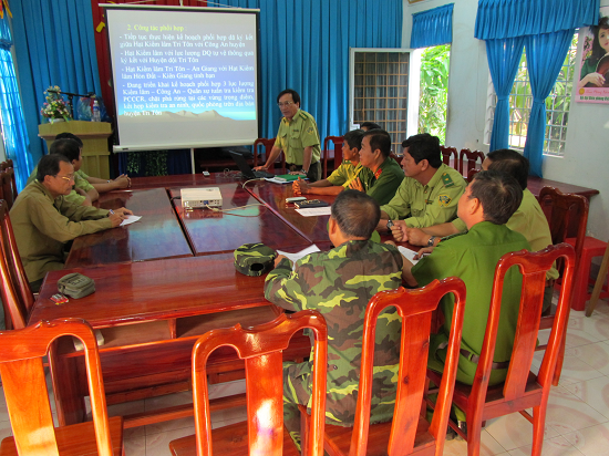 Ngày 13/3/2012, Ông Lê Mạnh Thường Phó Chỉ huy Trưởng, Tham mưu Trưởng Bộ Chỉ huy Quân sự tỉnh Kiêm Phó Trưởng Ban Ban Chỉ huy về các vấn đề cấp bách trong bảo vệ rừng và PCCCR tỉnh làm trưởng đoàn phối hợp liên ngành kiểm tra công tác PCCCR tại hai huyện Tri Tôn và Tịnh Biên. Tham gia đoàn có Ông Lương Văn Liếng Chi cục Trưởng chi cục kiểm lâm Kiêm chánh văn phòng Ban chỉ huy, Ông Trần Phú Hòa Phó Chi cục Trưởng Chi cục Kiểm lâm, Ông Lưu Hòa Đệ Phó Chỉ huy Trưởng Ban Chỉ huy Quân Sự huyện Tịnh Biên, ông Nguyễn Văn Lến Chỉ huy Trưởng Ban Chỉ huy Quân sự huyện Tri Tôn và ông Trần văn Trung trung tá Đội trưởng Đội quản lý hành chánh thuộc phòng công an huyện Tri Tôn, Hạt Trưởng hai Hạt Kiểm lâm Tri Tôn, Tịnh Biên và Đội Trưởng Đội Kiểm lâm Cơ động và phòng cháy, chữa cháy rừng.