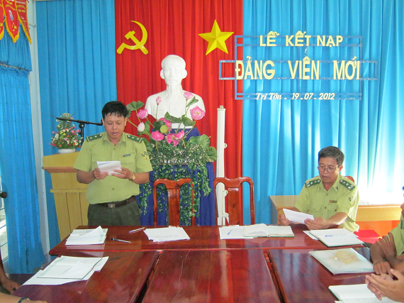 Vào lúc 15h 25 phút, ngày 19 tháng 07 năm 2012, tại Văn phòng Hạt Kiểm lâm Tri Tôn đã tổ chức Lễ Kết nạp Đảng viên mới cho Đoàn viên ưu tú Huỳnh Thái Mỹ thuộc Công đoàn bộ phận Hạt Kiểm lâm Tri Tôn.