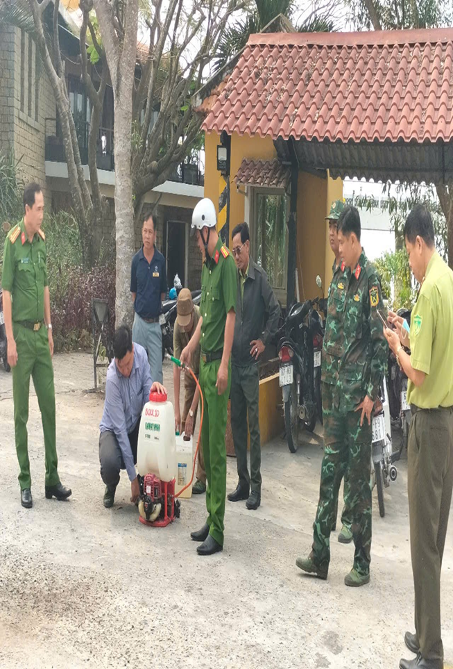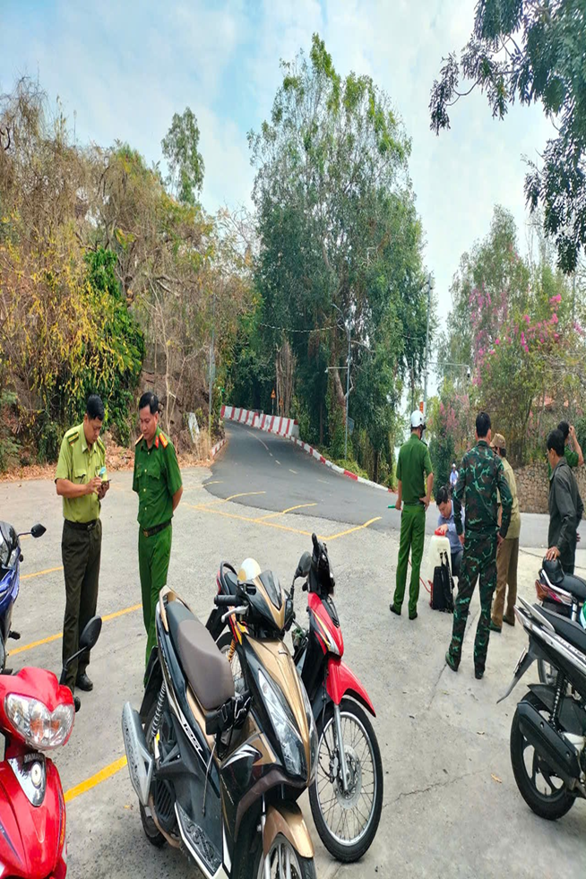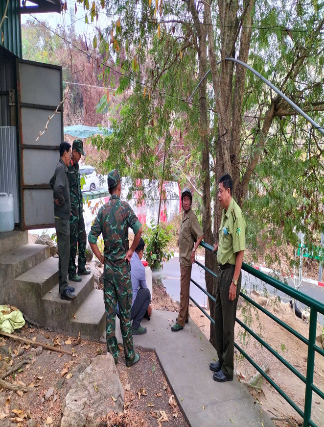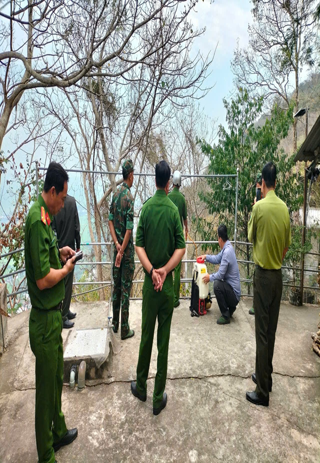 Đoàn Kiểm tra công tác chuẩn bị phương tiện, dụng cụ phòng cháy chữa cháy rừng của Chủ rừng như: Việc bố trí phương tiện, dụng cụ và lực lượng ứng trực phòng cháy chữa chay rừng cho khu rừng được Nhà nước giao quản lý, sau đó Đoàn tiến hành đi thực tế kiểm tra các phương tiện, dụng cụ được bố trí rải đều quanh Núi Sam 10 Máy chữa cháy đeo vai, trong đó: 05 máy chữa cháy đeo vai, 100 cal nhựa 10 lít được bố trí tại các trọng điểm cháy trên núi; 05 máy chữa cháy đeo vai và 100 cal nhựa 10 lít được bố trí tại các trọng điểm quanh chân Núi Sam, 01 hợp đồng ứng trực phòng chay chữa cháy rừng khu vực Núi Sam.